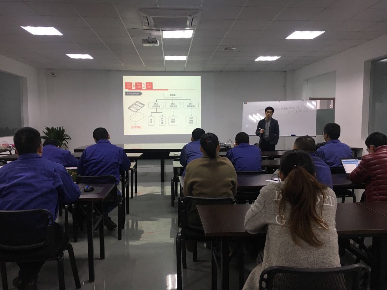 公司中高層管理人員悉數(shù)到位,蔣老師先就行業(yè)專利申請量、國家知識產(chǎn)權局機構(gòu)改革、專利法的修訂,以及知識產(chǎn)權審查等知識產(chǎn)權背景和發(fā)展趨勢進行了詳細的介紹,并與各部門領導在產(chǎn)品生產(chǎn)和銷售、人事管理、侵權金額判定、專利申請時機的把握和軟件著作權等方面進行了交流。在對技術人員的培訓會上,重點介紹了專利技術方案的挖掘方法和步驟,教大家如何判定專利侵權和如何規(guī)避設計等專業(yè)知識。參培人員積極參與互動交流,認真學習,培訓目標圓滿完成。